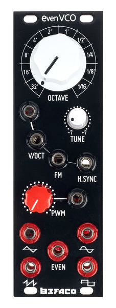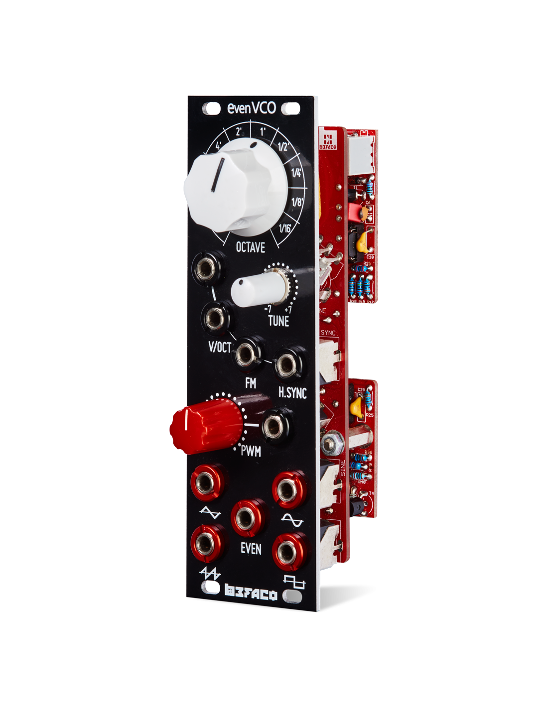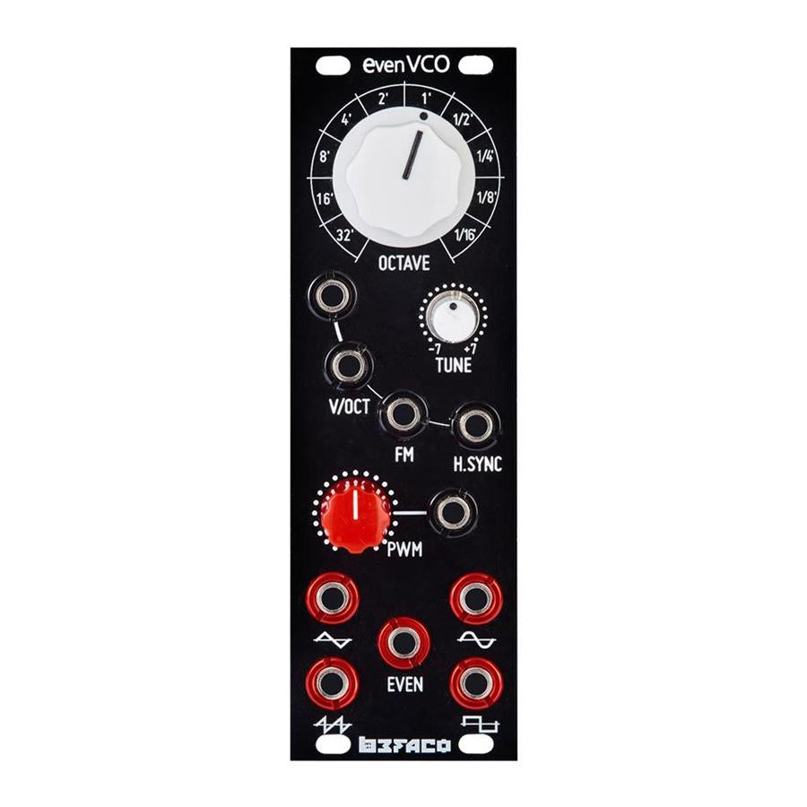 The EVEN VCO is a voltage-controlled oscillator that offers stability and high precision tuning over 10 octaves. A redesigned temperature compensation circuit maintains the oscillator stable against voltage and temperature drops.