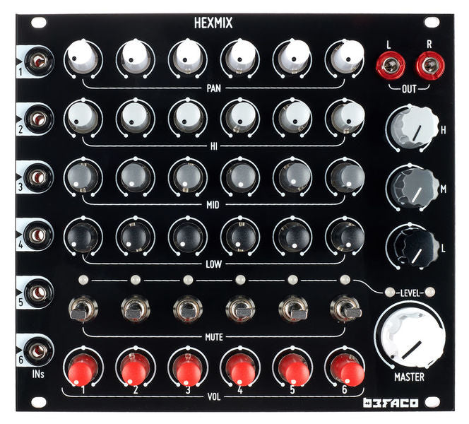 Hexmix System is a six channel performance mixer specially designed for Eurorack.