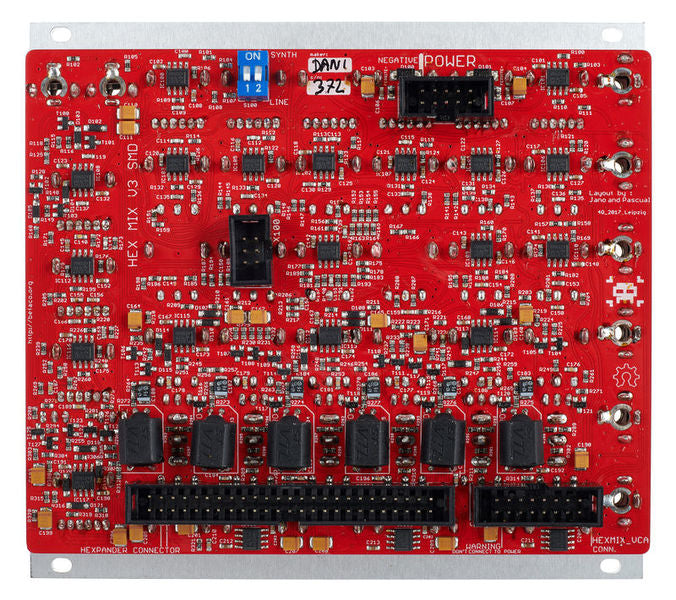 The system has two separate modules, the core of the mixer: Hexmix that has six channels with three band EQ, mute, pan and EQ section on the master, and Hexpander that add three auxiliar sends per channel, PFL, individual outs and balanced output.