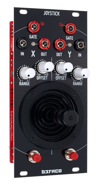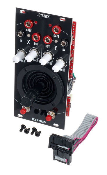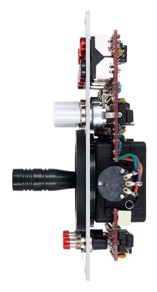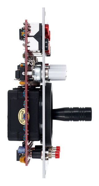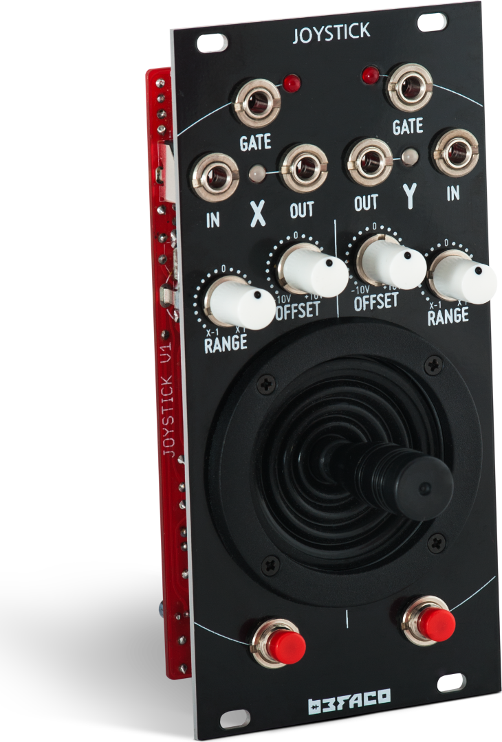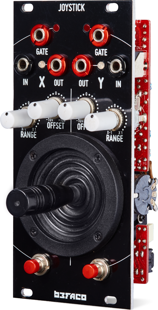 A compact attenuverting (attenuator-inverter) joystick controller and Gate Generator. With it, you can generate and process two control voltages using only one hand. Provided controls for CV ranges and offset adjust the boundaries of your control, this way it never gets out of the desired range, ensuring sensibility and playability even with wild performance gestures.
