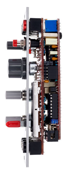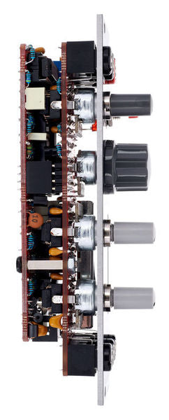 The module has been designed with a kick synthesis patch in mind: VCO to VCA with an envelope to open the VCA and another one to change VCO pitch. As addition a CV controlled waveshaper has been added to the VCO and an extra VCA at the end of the signal path to control the volume of the sound to act as kind of an accent.