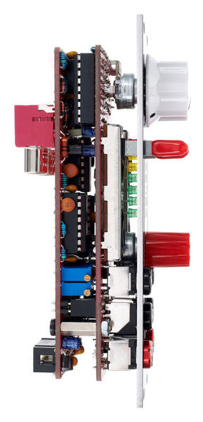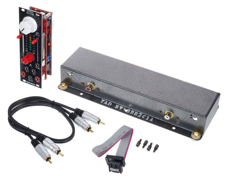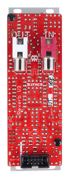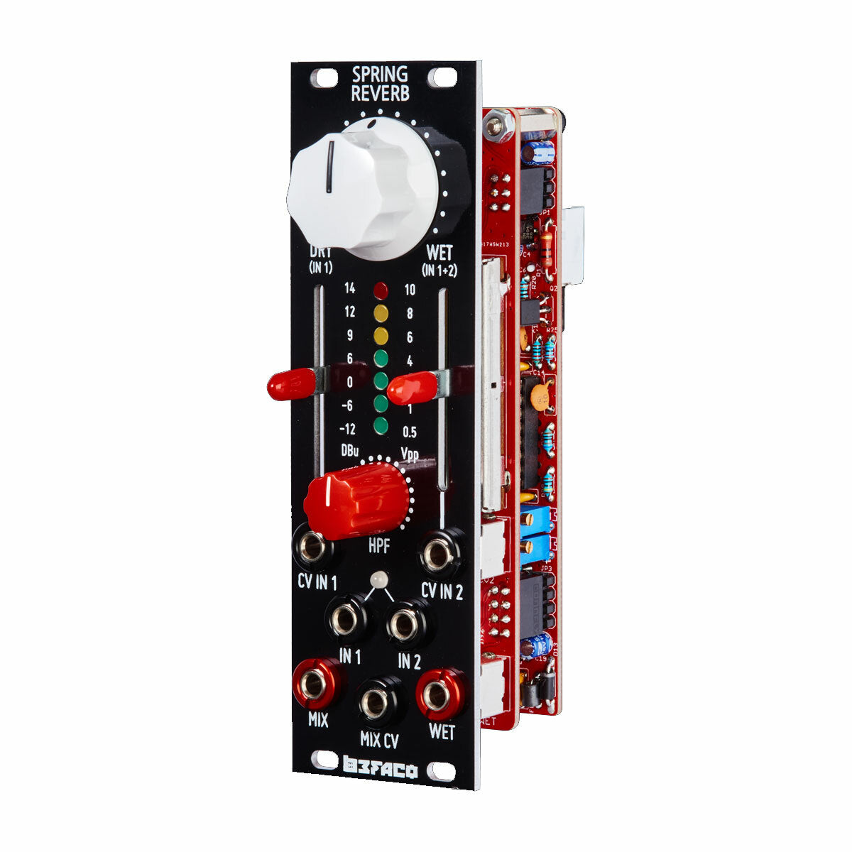 This is our take on an analog spring reverb module. Featuring VCAs for the two available inputs (with different routing), CV control for DRY/WET and visual feedback for signal levels at input and output of the tank.