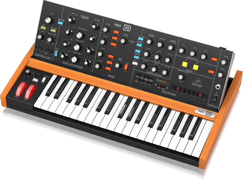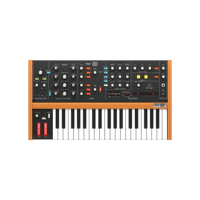 The 1970s spawned the first truly portable analog synthesizer, and while it was quickly adopted by lots of renowned musical artists including Jan Hammer, Chick Corea, Rick Wakeman, Jean-Michel Jarre, Isao Tomita and Keith Emerson to name a few, it was somewhat temperamental and very expensive. An ultra-affordable homage to that iconic synthesizer, with all the features of the original and then some, the Behringer POLY D lets you conjure up virtually any monophonic or polyphonic sound imaginable with incredible finesse and ease. The pure analog signal path is based on authentic VCO, VCF, VCA and ladder filter designs in conjunction with a dedicated and fully analog triangle/square wave LFO. Owning a POLY D is like having your own personal time machine, enabling you to freely embrace the past – or shape the future!