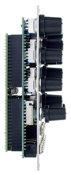 Three FM inputs for each filter: One with 1V/OCT pitch tracking, one with a unipolar attenuator, and one with a bipolar attenuverter.