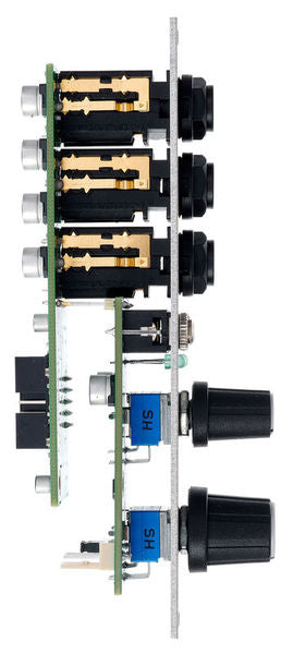 Left input is normalled to the Right input, allowing a mono input signal to drive both stereo output channels.