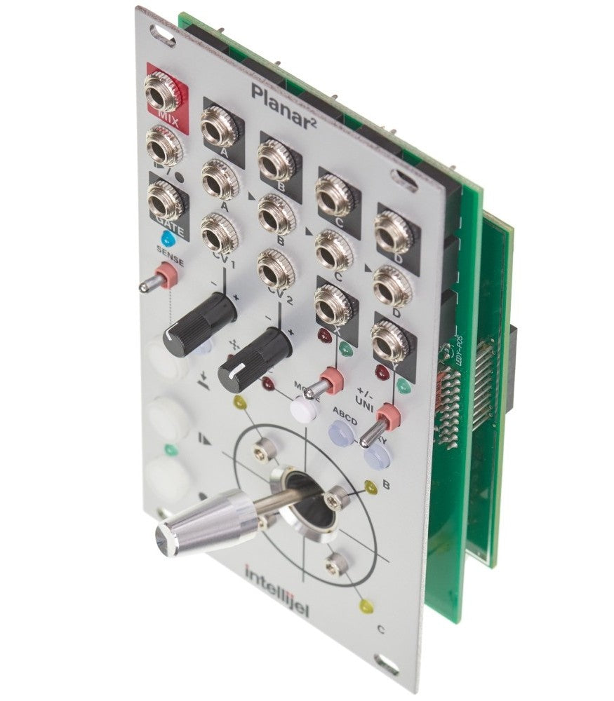 It mixes, morphs, routes and pans audio inputs; triggers gates; outputs control voltages and is itself, CV-controllable. Planar2 puts the ‘joy’ back in ‘joystick,’ and the ‘fun’ back in ‘function generator.’ Its multitasking and tactile interface makes it a flexible and unique control device, no matter what your musical genre.