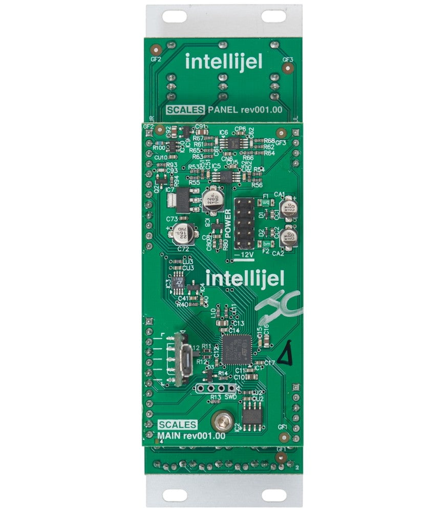 Scales is an 8hp dual-channel note quantizer and step sequencer. Fundamentally, it takes an input voltage, quantizes it to notes in a user-defined scale, and sends that quantized voltage to an output, where you can use it as a melodic pitch source for oscillators or any other module that expects to see discreet note values at its input.