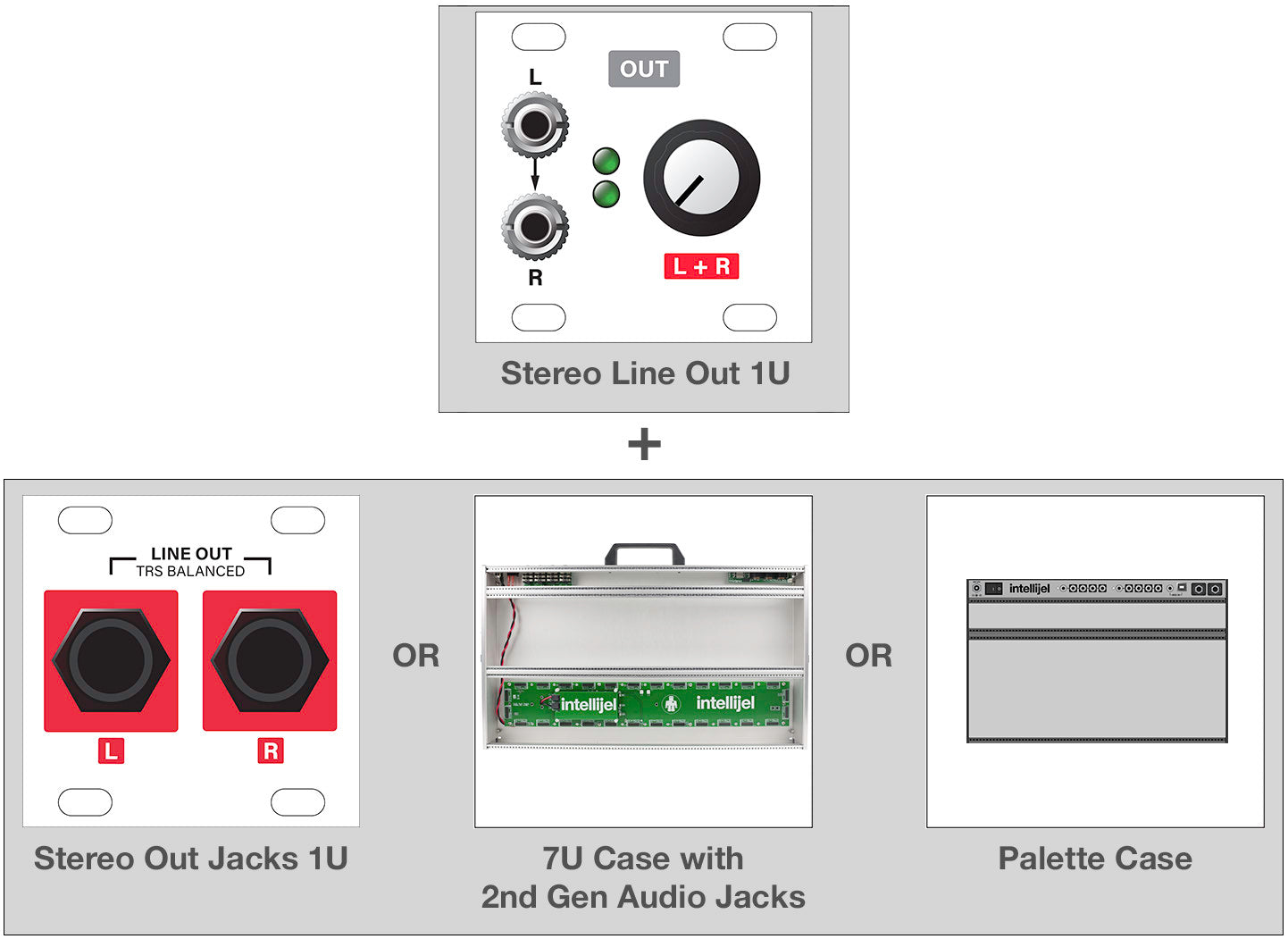 To connect with Palette Case, 7U Case (only with 7U Audio Jacks Board V2) or the "Stereo Out Jacks 1U" module