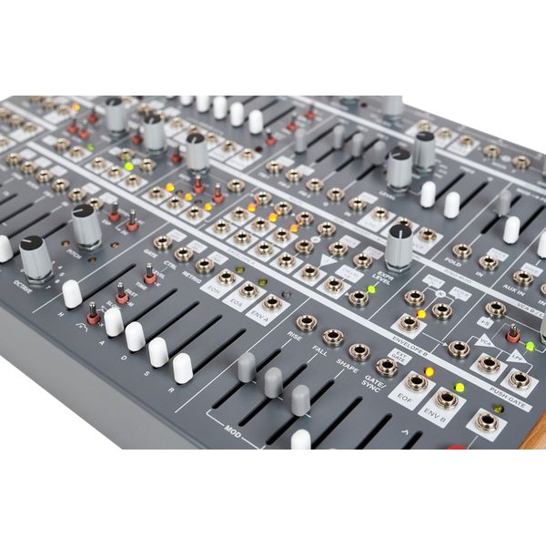 Filtro multimodo con 4 entradas CV y 8 modos de filtro seleccionables (paso bajo de 6 dB, 12 dB y 24 dB, paso banda de 12 dB y 24 dB, paso alto de 24 dB, notch y phaser)