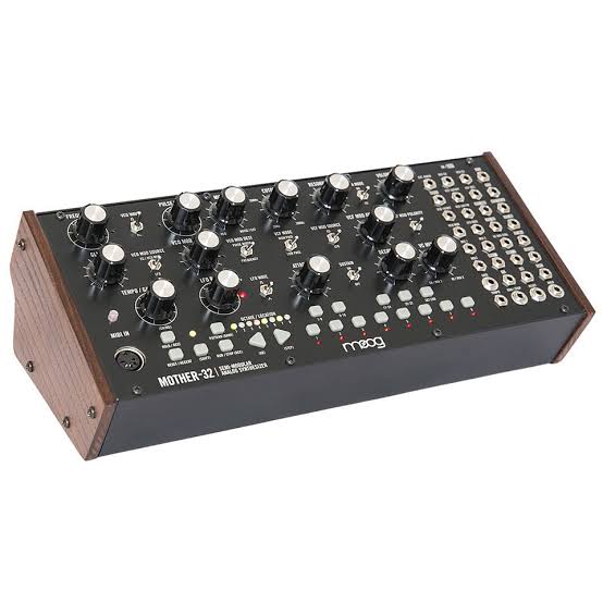 Mother-32 comes secured in a rugged extruded aluminum enclosure with wood sides and features a voltage controlled 32-step sequencer with 64 sequence locations, definitive Moog low pass and high pass Ladder Filter, 2 voltage controlled mixers, a classic Moog oscillator with dual outputs, wide-range LFO with audio-rate modulation capability, MIDI input and MIDI to CV conversion, white noise, a modular patchbay with 32 patch-points for extended synthesis complexity and an assignable CV jack with 16 assignable sources.