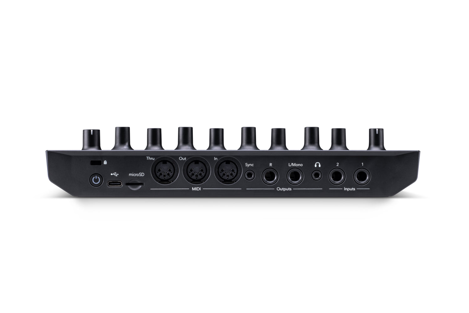Its colossal sound is provided by two refined polyphonic digital synth tracks. Load thousands of your own samples using the microSD card, and shape them to perfection across four drums tracks. Advanced FX lets you douse synths, drums, and incoming audio in lush reverb and delay, make your mix pump with sidechain, and punch with the master compressor.